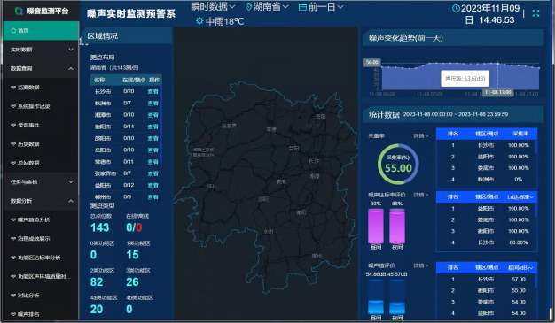 圍繞湖南省噪聲污染防治工作的需要,采用5G、物聯網、大數據、人工智能等先進技術,構建噪聲自動監測、審核、分析體系。